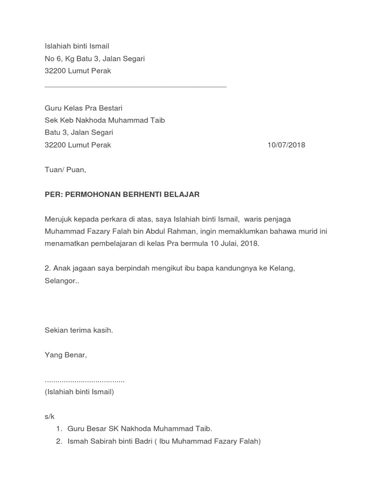 20 Contoh Surat Berhenti Sekolah Anak Images. Aku buat post ni sbb aku banyak terima. Contoh surat rasmi berhenti sekolah rendah islam contoh surat rasmi berhenti sekolah rendah agama contoh surat rasmi berhenti sekolah.
